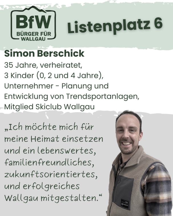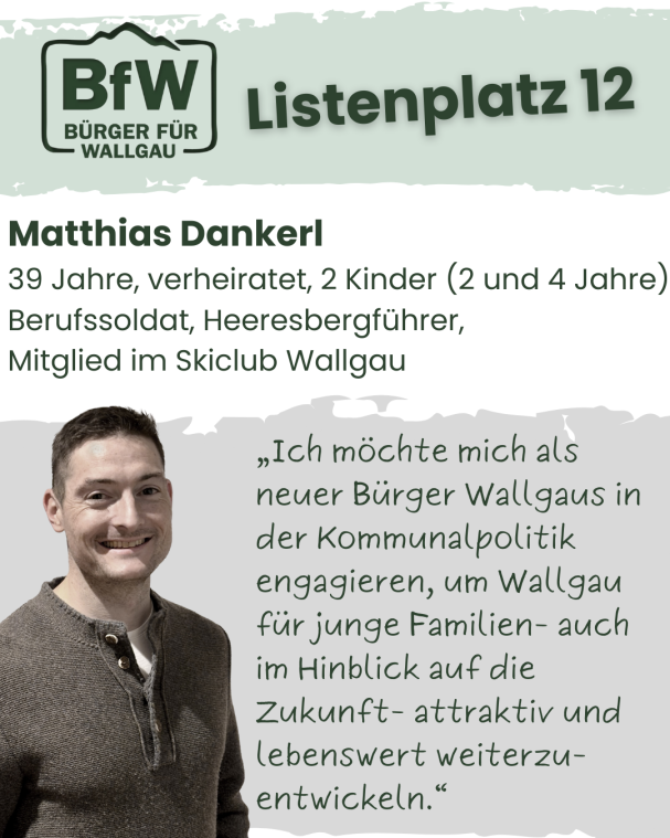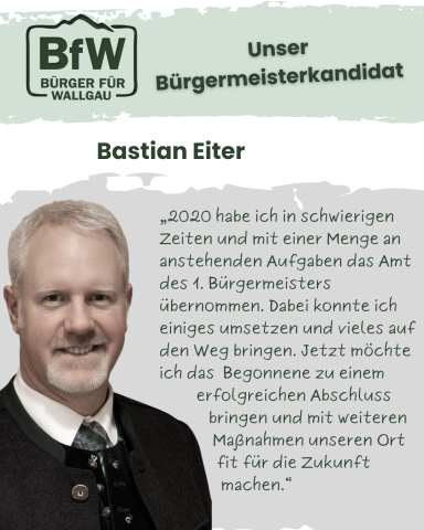 „2020 habe ich in schwierigen Zeiten und mit einer Menge an anstehenden Aufgaben das Amt des 1. Bürgermeisters übernommen. Dabei konnte ich einiges umsetzen und vieles auf den Weg bringen. Jetzt möchte ich das Begonnene zu einem erfolgreichen Abschluss bringen und mit weiteren Maßnahmen unseren Ort fit für die Zukunft machen.“