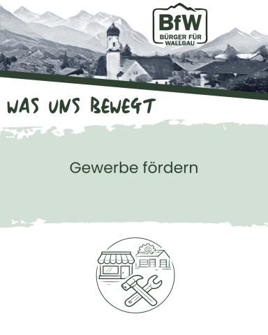 Wir setzen uns konsequent für den Ausbau des neuen Gewerbegebiets ein und unterstützen zugleich zukunftsorientierte Entwicklungen, um Betriebe zu stärken, Arbeitsplätze zu sichern und neue zu schaffen. Ziel ist es, wohnortnahe Arbeits- und Ausbildungsplätze für unsere junge Bevölkerung zu fördern, die örtlichen Gewerbesteuereinnahmen zu steigern und unseren Bürgerinnen und Bürgern eine Perspektive im eigenen Ort zu bieten – so können wir Menschen hier halten und gute berufliche Chancen vor Ort ermöglichen! Kurze Wege zur Arbeit reduzieren den Pendelverkehr und leisten einen Beitrag zum Klimaschutz. Gleichzeitig bleibt mehr Kaufkraft im Ort, wovon Einzelhandel, Gastronomie und Vereine profitieren.